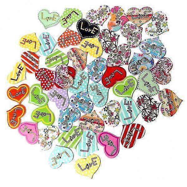 4x50 Pieces Love Printed Heart Shape Wooden Buttons for Sewing Crafts 25mm