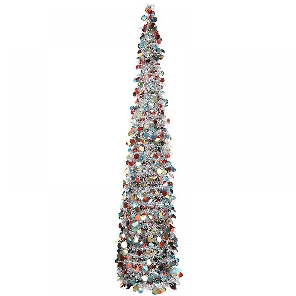 5FT Pop Up Christmas Tinsel Slim Tree with Shiny Sequins, Collapsible Pencil Xmas Tree Reusable w/ Stand for Fireplace, Office, Classroom - Colorful