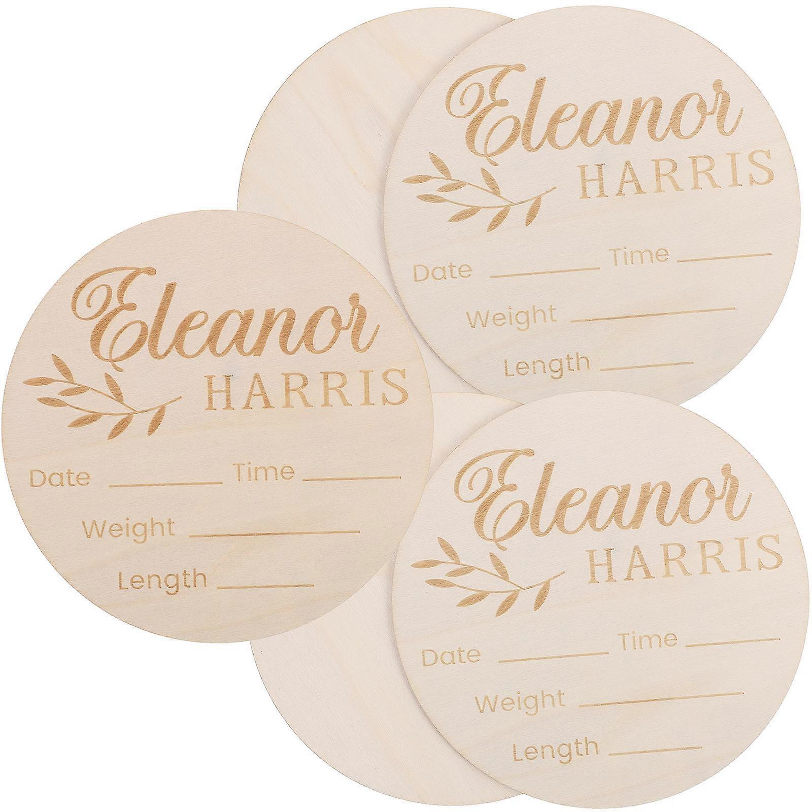 5pcs Wooden Baby Birth Announcement Sign Heart Newborn Name Sign