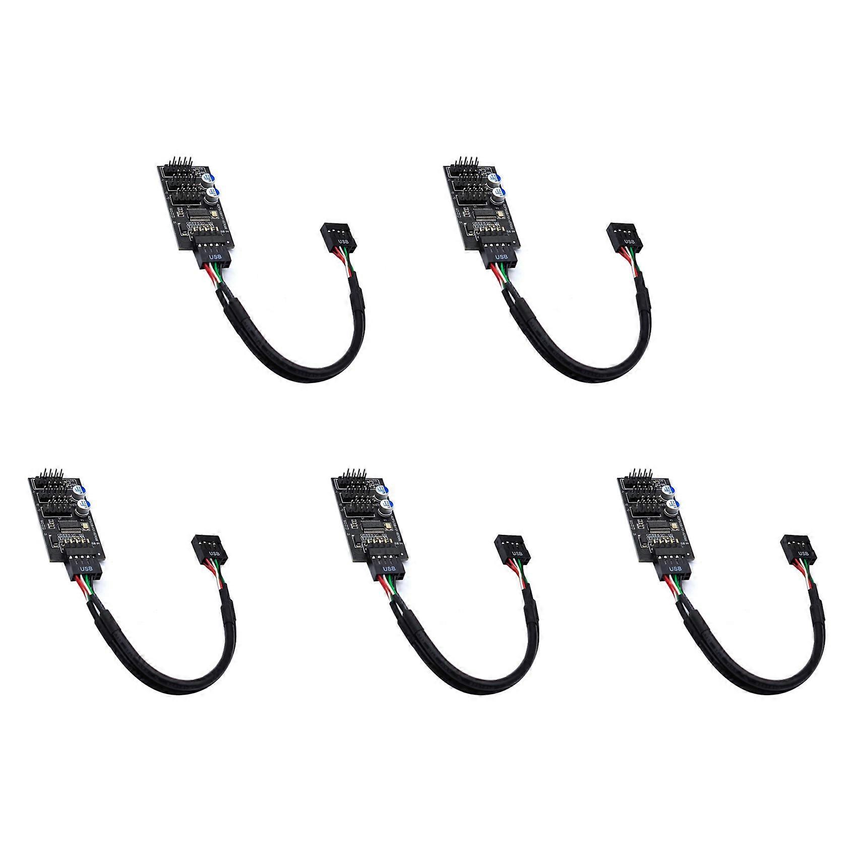 5X 9Pin USB Hub Connector USB Splitter 1 to 3 USB2.0 9Pin Header Board Cable for Water Cooling for RGB LED Fan