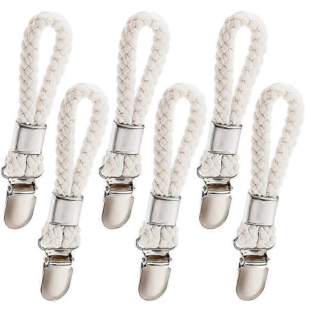 6 Pcs Tea Towel Clips & Hooks, Cotton Braided Towel Clips, Beach Towel Hangers, Kitchen Towel Holders, Sock Clips, Home Storage Hooks