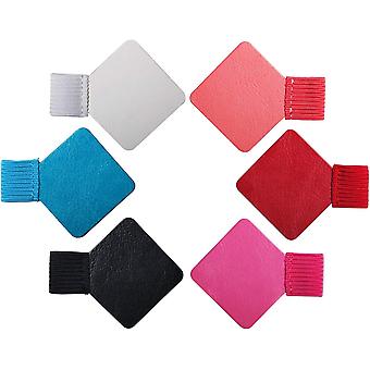 6 Pieces Square Elastic Leather Self Adhesive Pen Ring Clip Holder (Black)