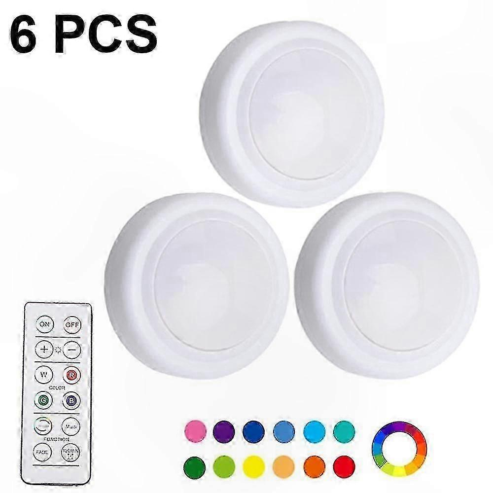 6Pcs LED Night Lights with 16 Color Options, Battery Operated Dimmable Puck Lights, Wireless Under Cabinet Lighting with Remote Controls