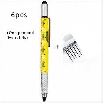 6pcs Pocket Genius Pen - Multi Functional Tool with Spirit Level Precision Screwdriver Stylus and Ru