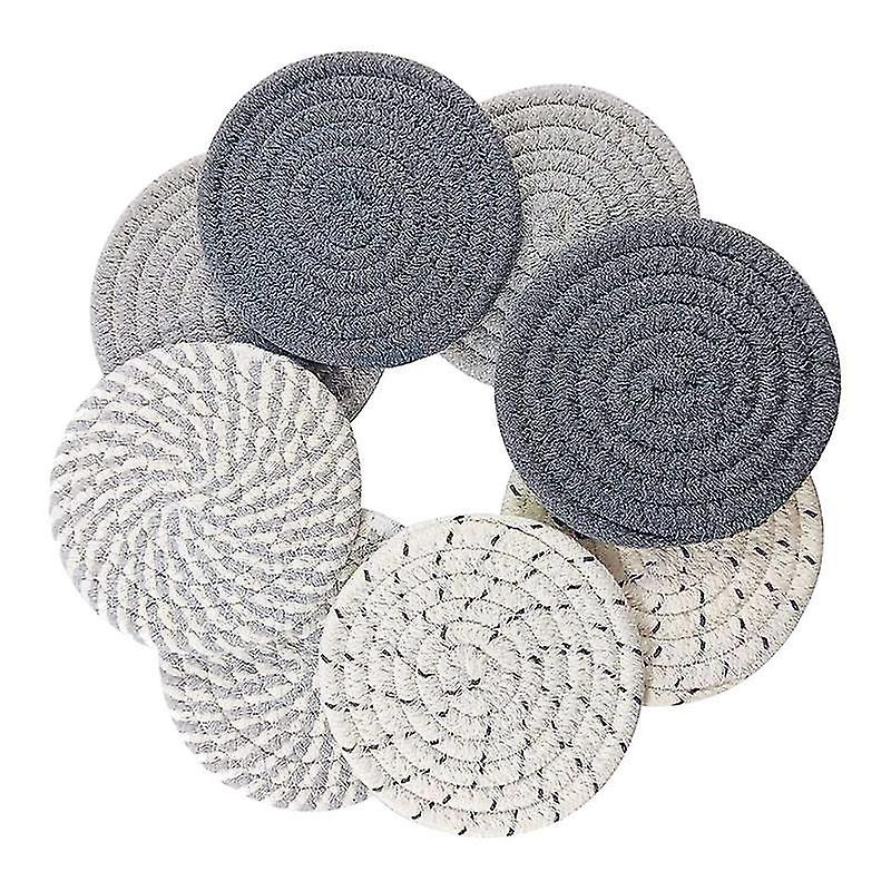 8 PCS Set With Coaster Holder: 8 Pcs coaster set come with an iron metal coaster holder to organize your coasters for wooden table, nature brown color to match you farmhouse kitchen decor.No More Fear of Spills: drink coasters are handcrafted from high quality material. They are more absorbent than other silicone or ceramic coasters. This coaster instantly absorbs spilled moisDurable and Thick Coasters for Drinks: Woven coasters are made of natural cotton ropes, which are very absorbent, thick and sturdy. it's diameter is the perfect size for almost any drink, cup, pots, and pans.Modern Farmhouse Decor: Comfortably holding weighted cups, mugs, wine glasses, tumblers, candles and plants. It works great as a decorative piece when displayed on a desk, tabletop in your kitchen, dining room, home office or bedroom, too A Great Gift for Every Family: Coasters for drinks absorbent with holder can not only absorb water well but also resist heat perfectly; hence they can be used as drink coasters as well as potholders. A great housewarming gift.color:Photo colorMaterial:cotton ropesize:11cmPackage Contents:8 x drink coastersOnly the above package content, other products are not included.Note: Light shooting and different displays may cause the color of the item in the picture a little different from the real thing. The measurement allowed error is +/- 1-3cm.