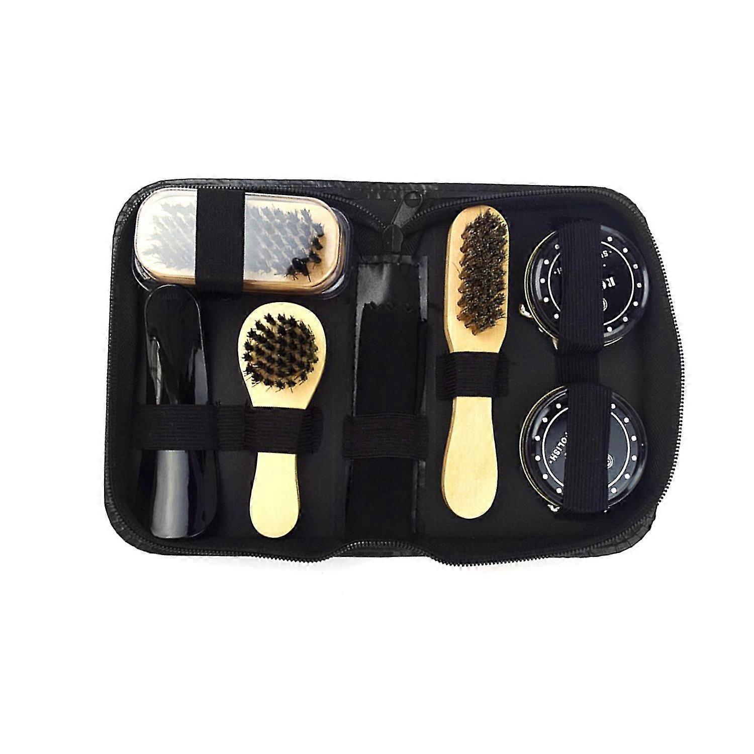 8pcs Shoe Shine Care Kit Black And Neutral Polish Brushes