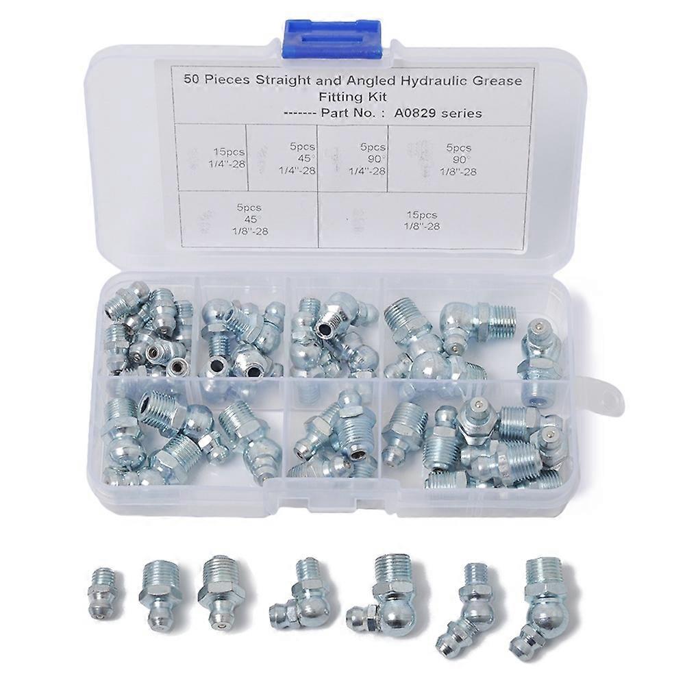 A0829 50Pcs Straight and Angled Hydraulic Grease Fitting Assortment Kit