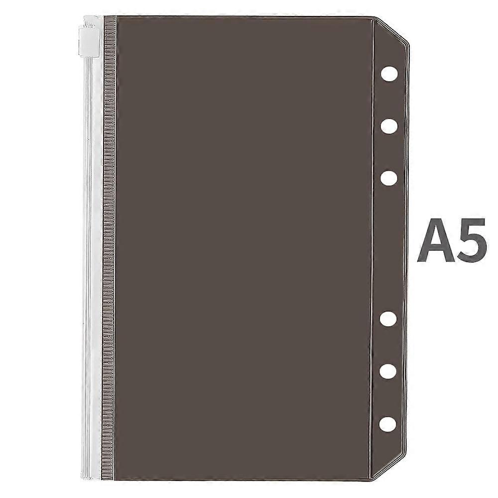 A5/A6 Binder Pockets PVC Binder Loose Leaf Bag Colorful Zipper Folders For 6-Ring Notebook Binder Pouch Document Filing Bags A5-Black