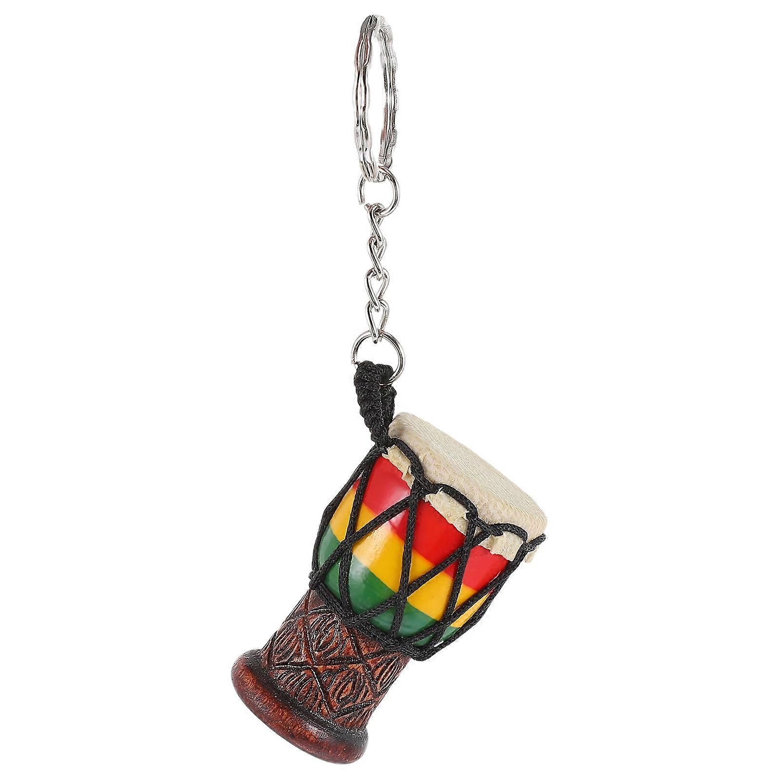 African Drum Key Chain Pendant for Decor 2Pcs Unique Decorative Keyring