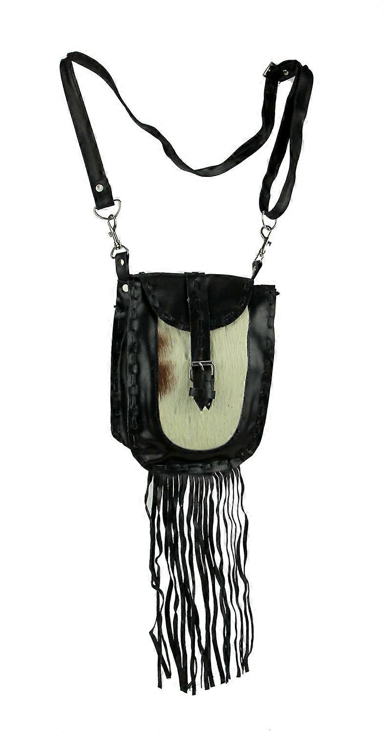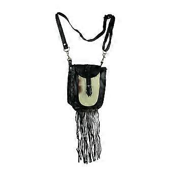 Genuine Leather Hair-On Hide Trim Fringed Crossbody Bag Small