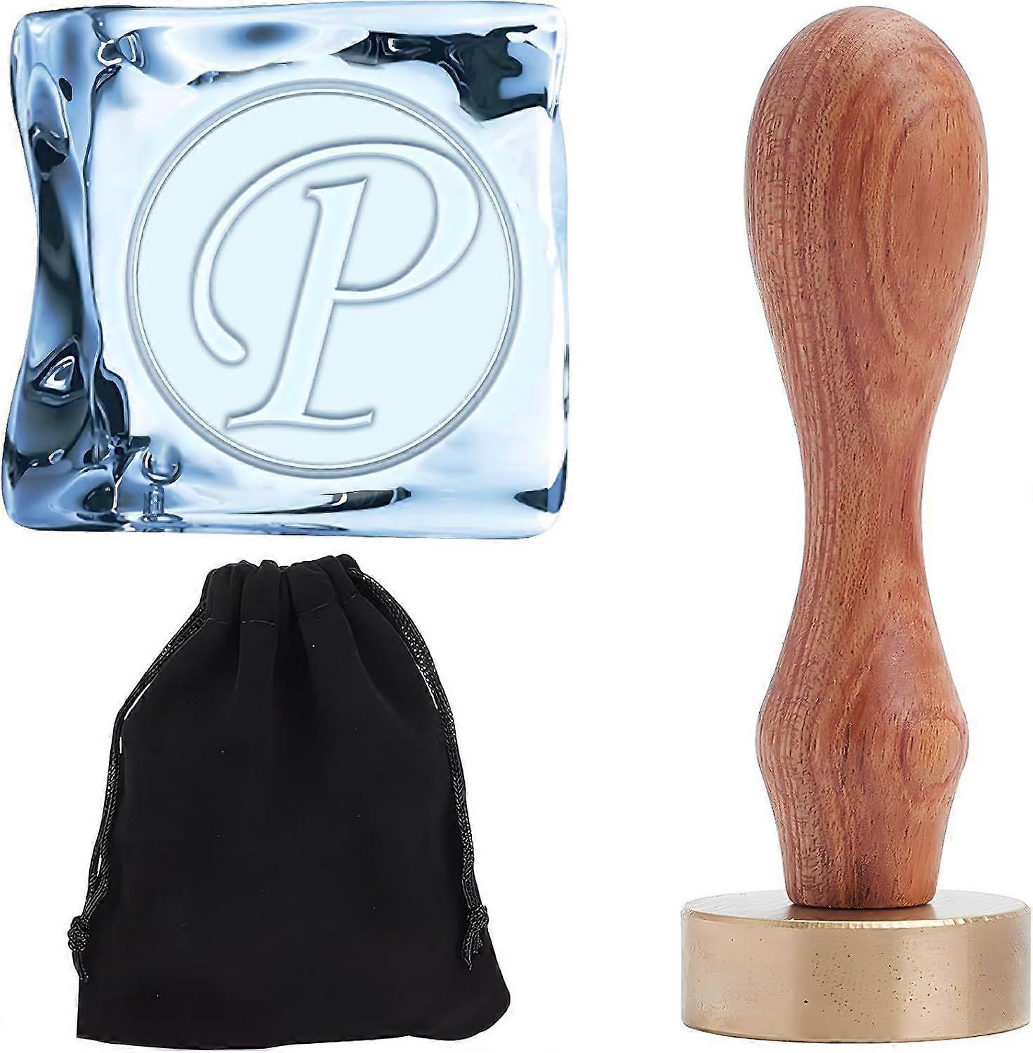 Initial Ice Stamp Letter P Ice Round Stamps Ice Branding Stamp with Removable Brass Head Wood Handle Vintage Ice Stamp for DIY Crafting Cocktail Whisk