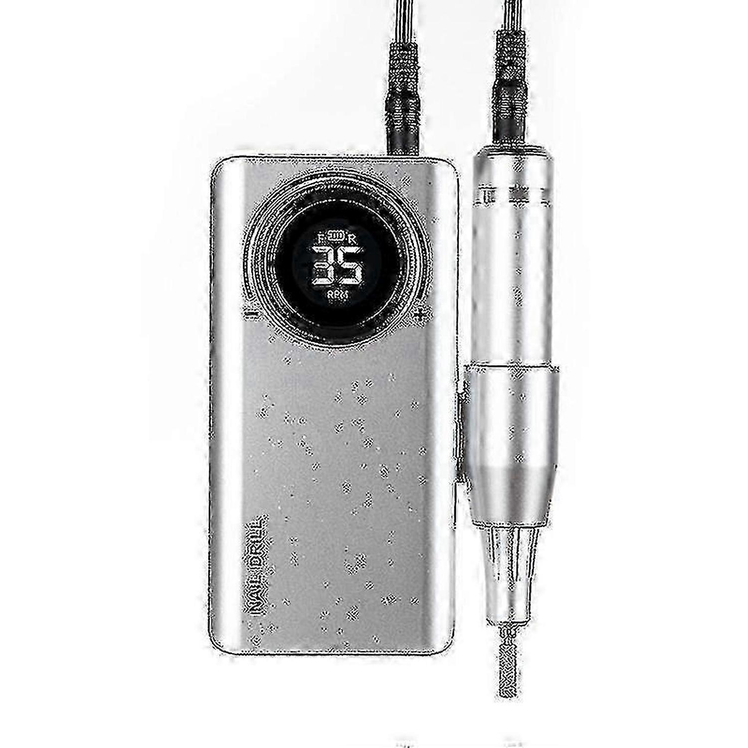 Professional Rechargeable Electric Drill for Manicure & Pedicure With 35000 RPM LCD Display - Powerful & Quiet Silver Machine