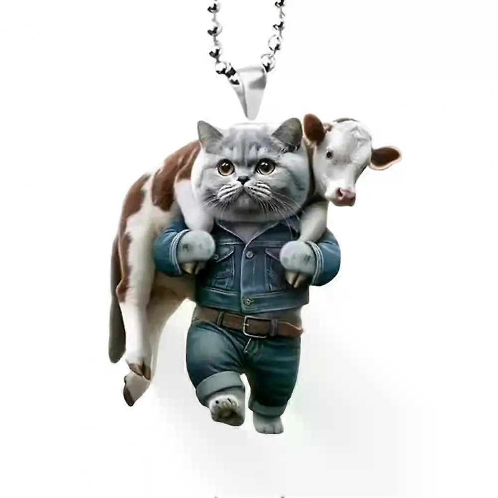 Car Auto Rearview Mirror Ornament With Lanyard Adorable Cat Design Animal Pendant Hanging Decoration Car Interior Accessories