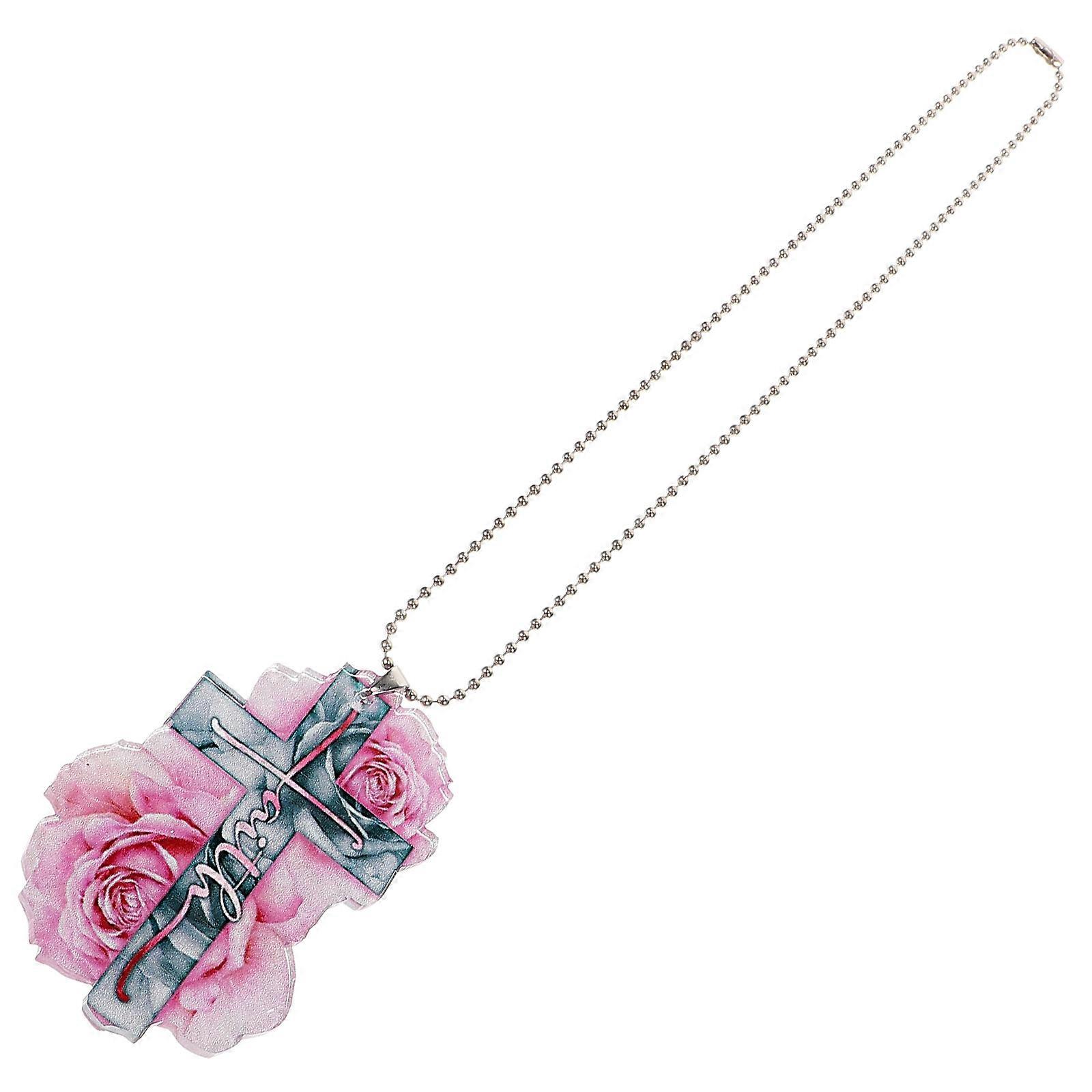 Car Rearview Hanging Decor Cross Hanging Ornament Rose Flower Hanging Decoration