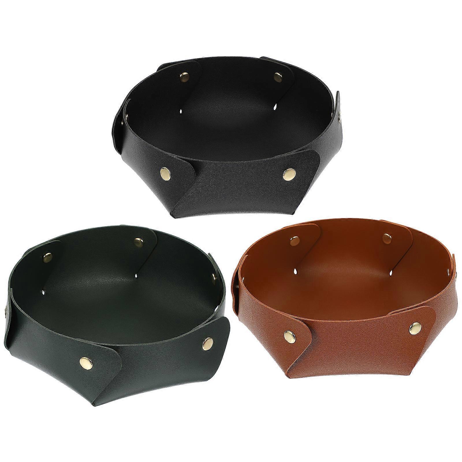 Key And Wallet Tray Leather Triangle Sundries Box Storage Organizer For Dining Room 3Pcs