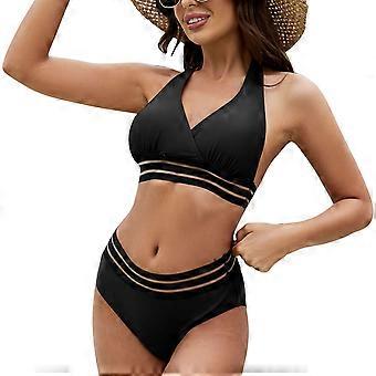Bikini Swimsuit V Neck Backless Mesh Splicing Hem Waist 2 Piece Bathing Suit for Pool Beach Spa Bath