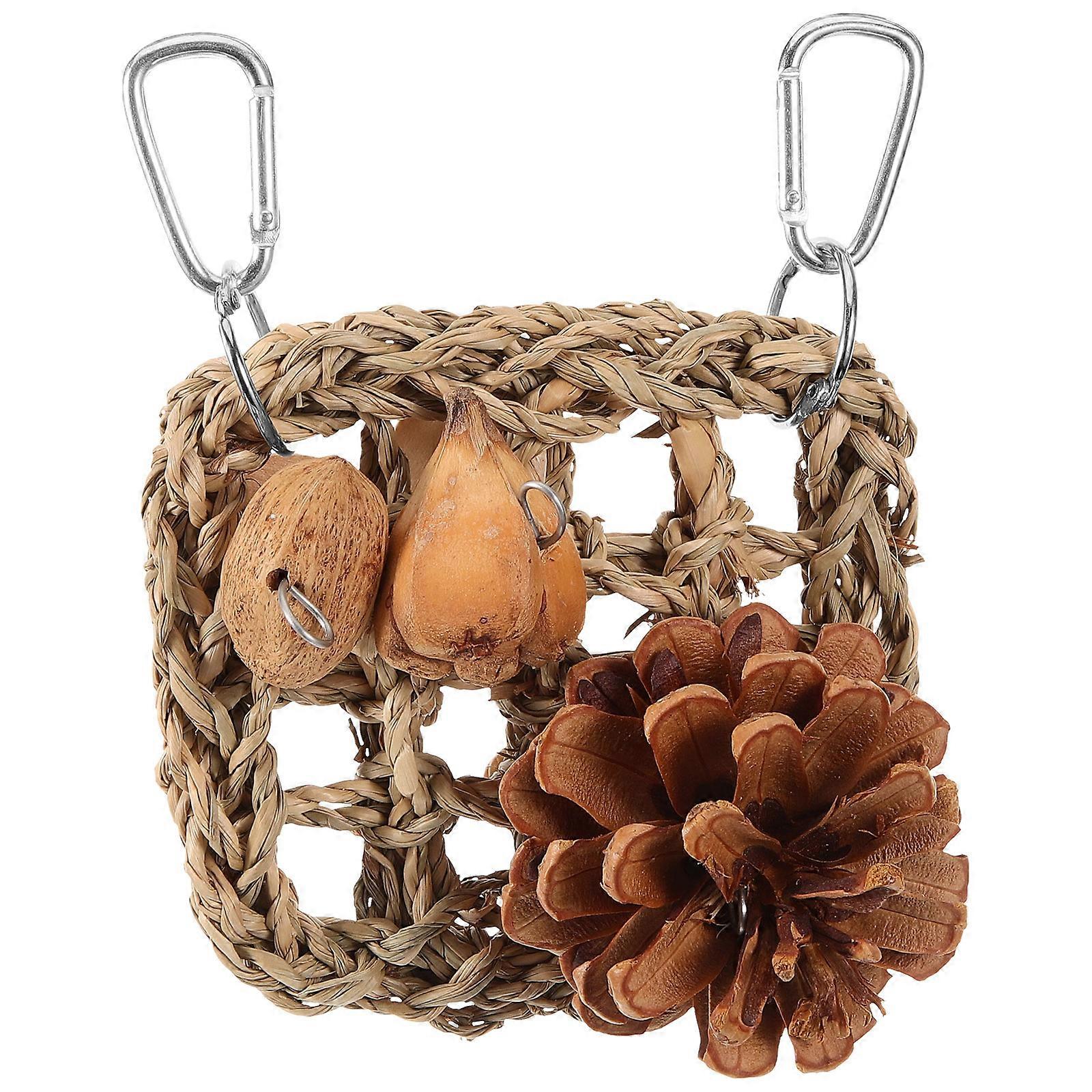 Bird Chewing Net Hanging Activity for Pet Parrots Daily Playtime Rustic Wooden 1Set