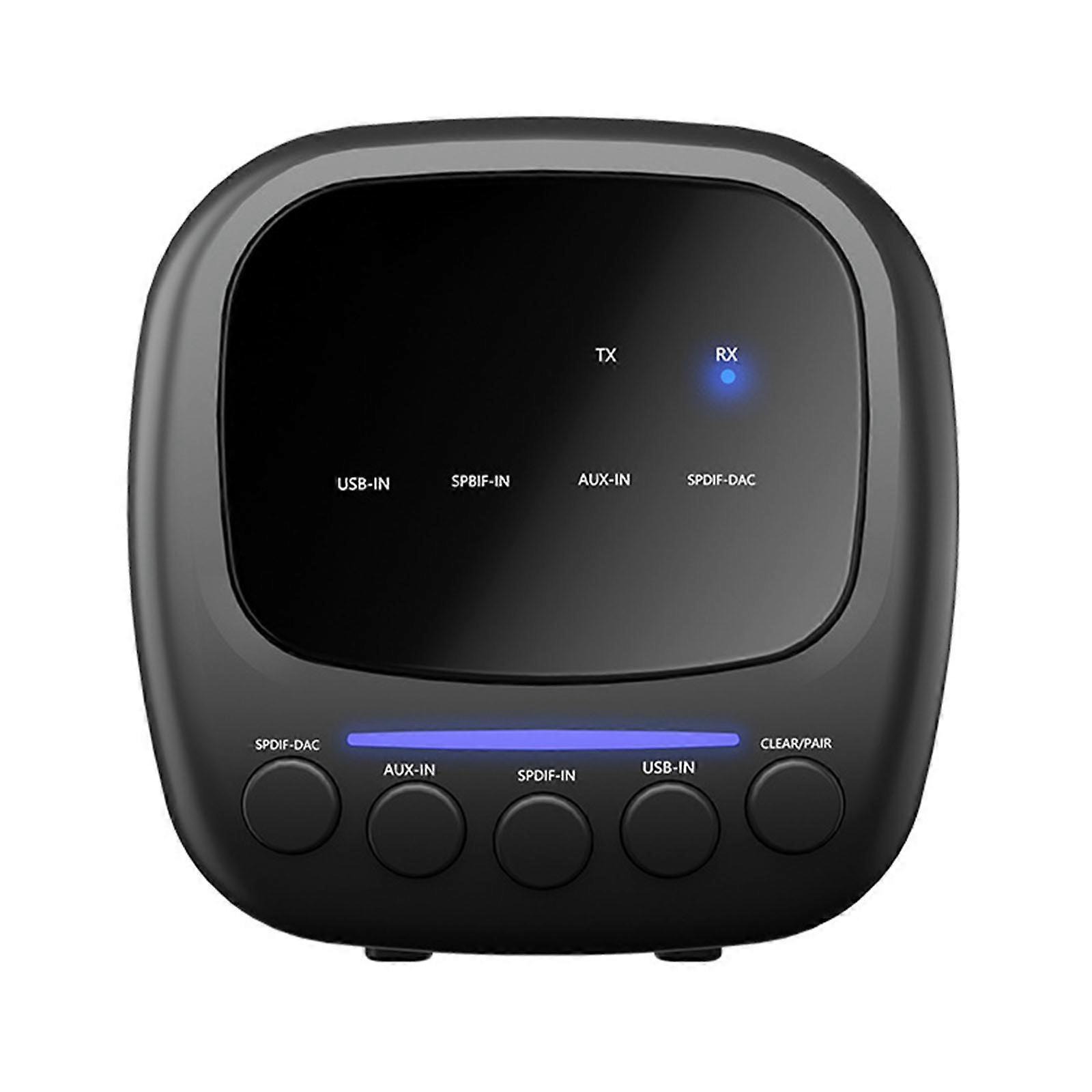 Bluetooth-compatible 5.1 Transmitter Receiver with 3.5mm Aux, Optical & Coaxial Inputs, LCD Display, Low Latency Connect Black