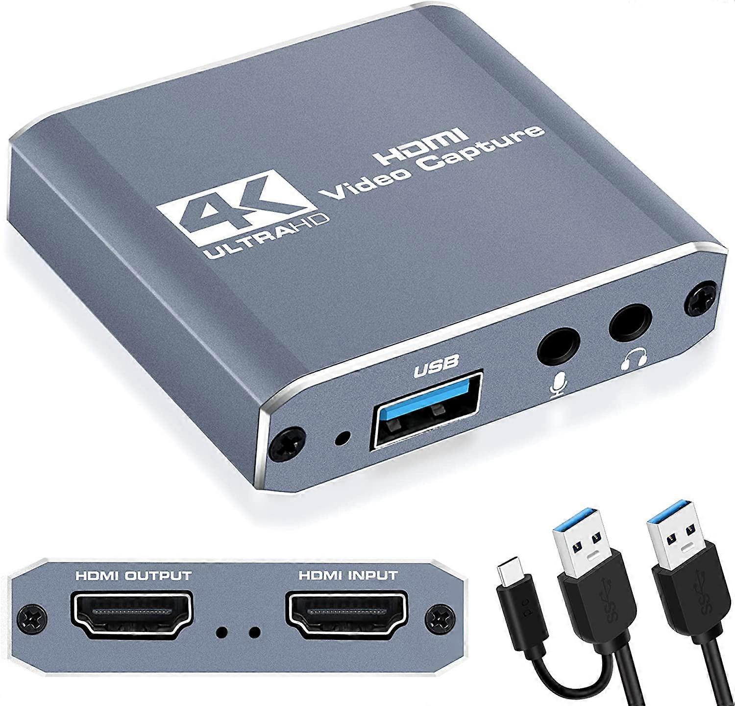 Capture 1080p 60fps, 4K HDMI Video Game Capture to USB/Type-C with rophone & HDMI Loop-Out, Low Latency