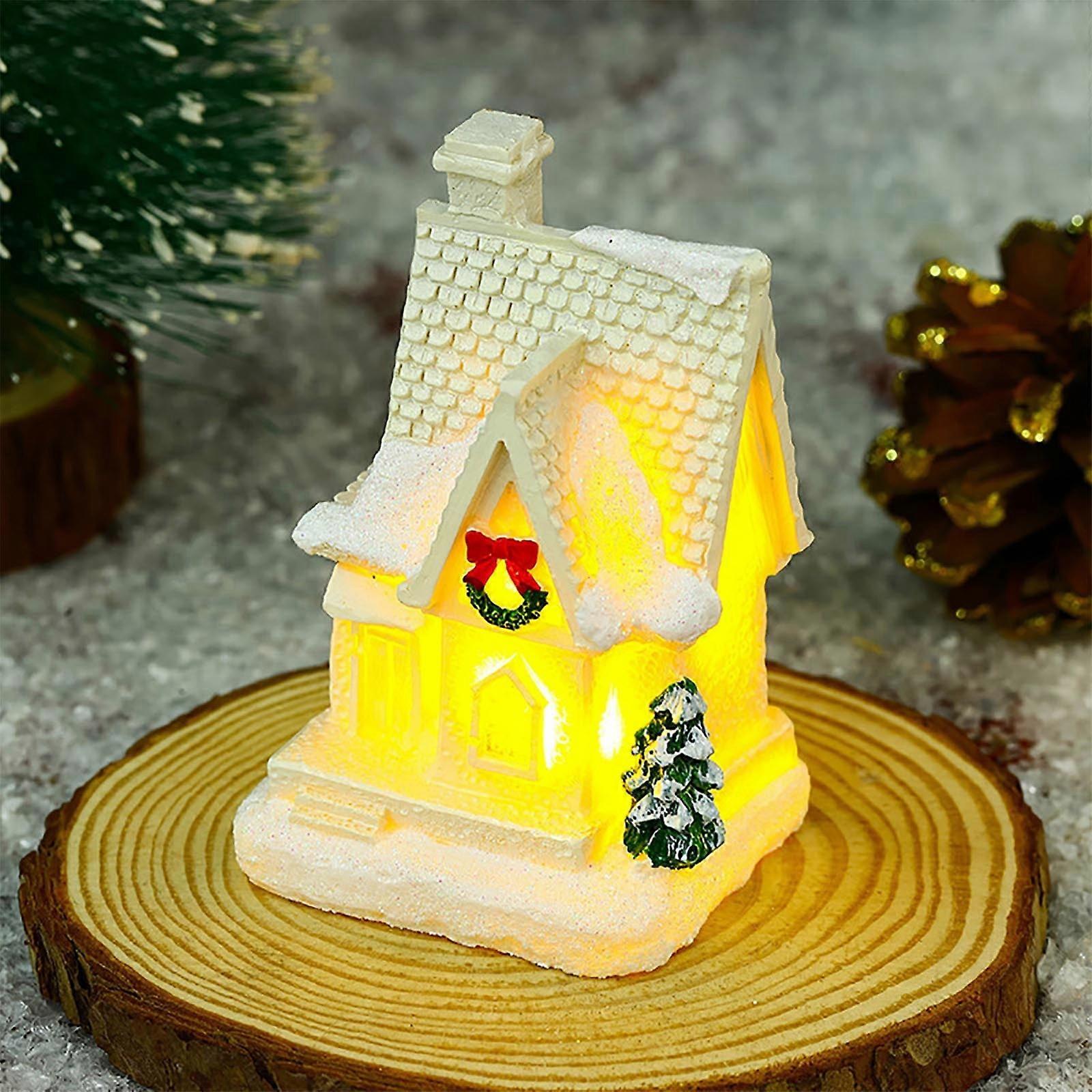 Christmas Winter Village Houses Set with LED Lights, DIY Miniature Resin Ornament Kits, Compatible with Cedar Bare Branch Tree Lamp
