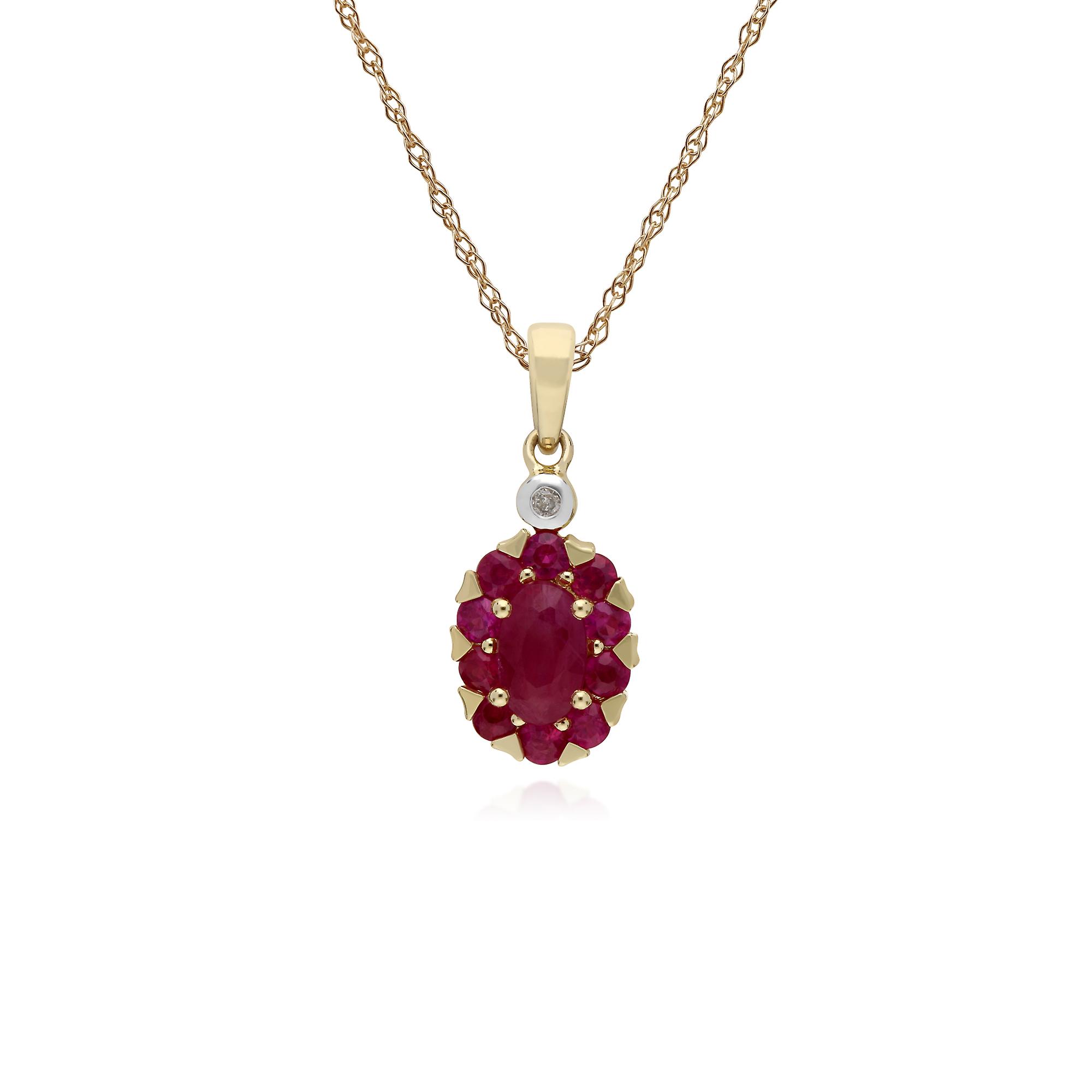 Cluster Round Ruby & Diamond Oval Pendant Necklace in 9ct Yellow Gold 135P1912019