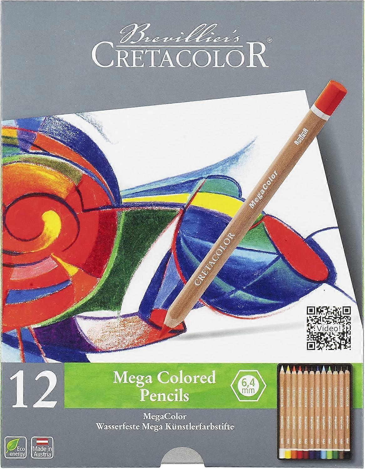 CRETACOLOR MegaColor Pens, Set of 12 in Metal Case: Extra Thick Lead, Highly Pigmented & Waxy Smear