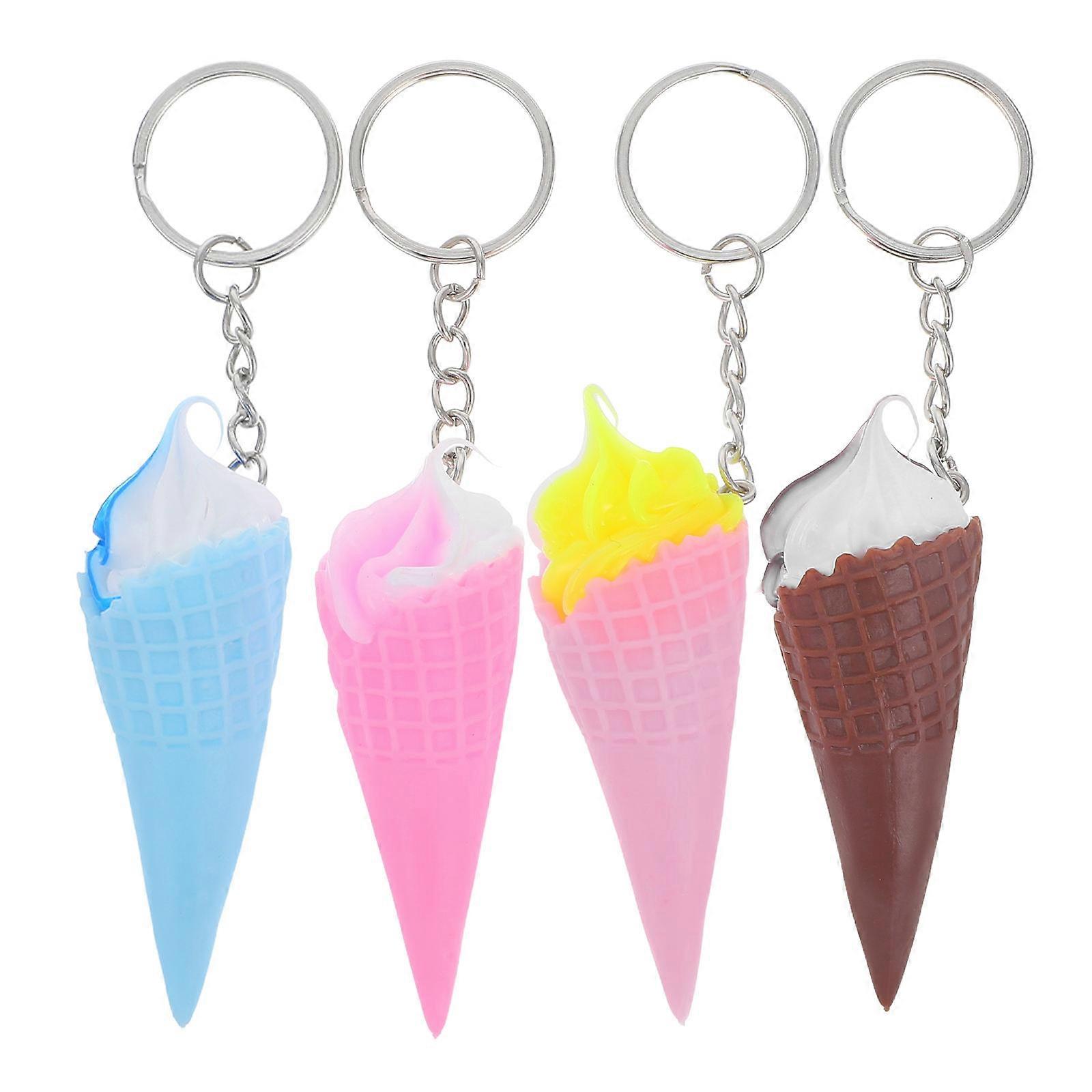 Cute Ice Cream Cone Keychain Assorted Color PVC Keyring Pendant for Key Holding Mini Size