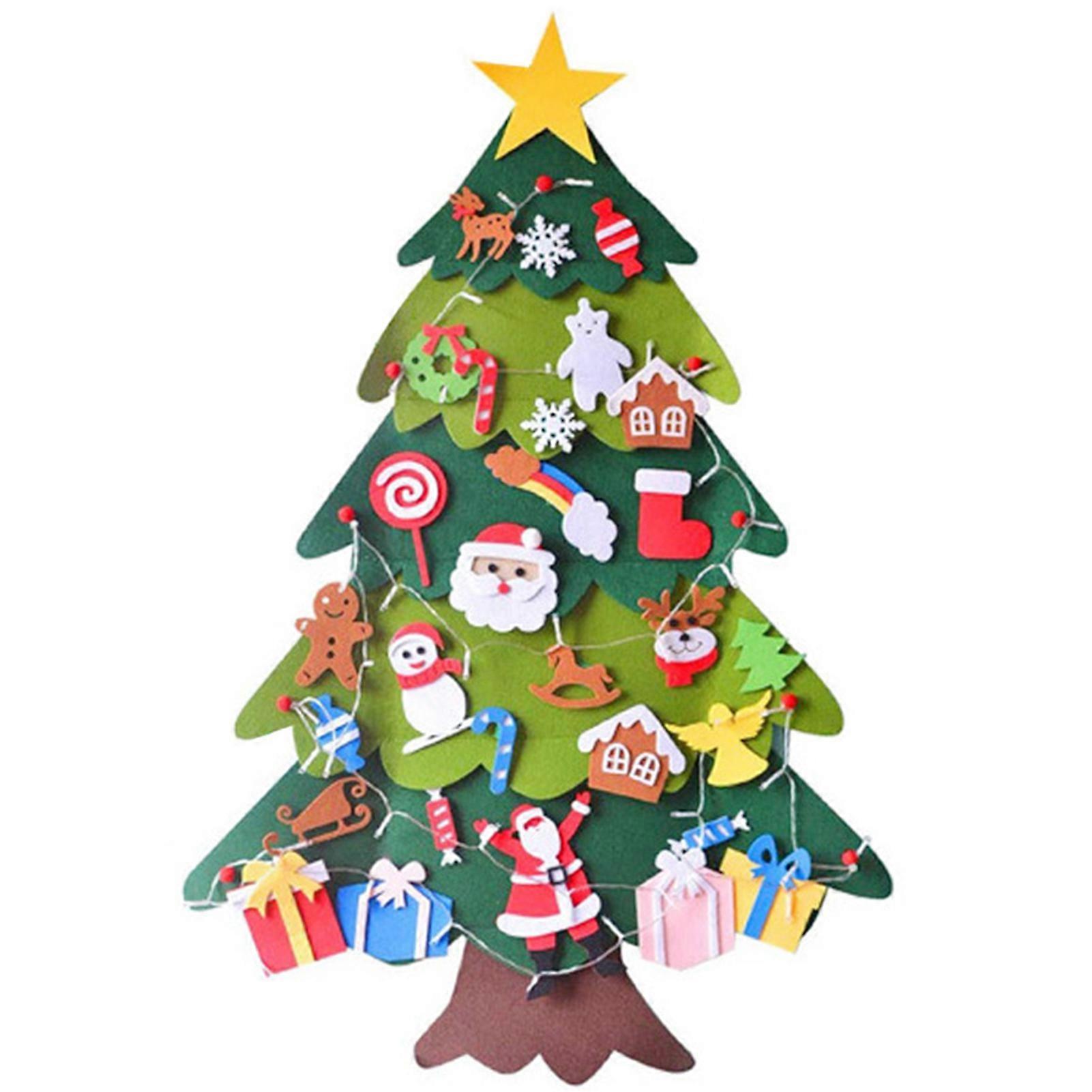 DIY Hanging Felt Xmas Tree with LED Lights DIY Felt Xmas Tree Toy Wall Decoration for Door Wall Decor