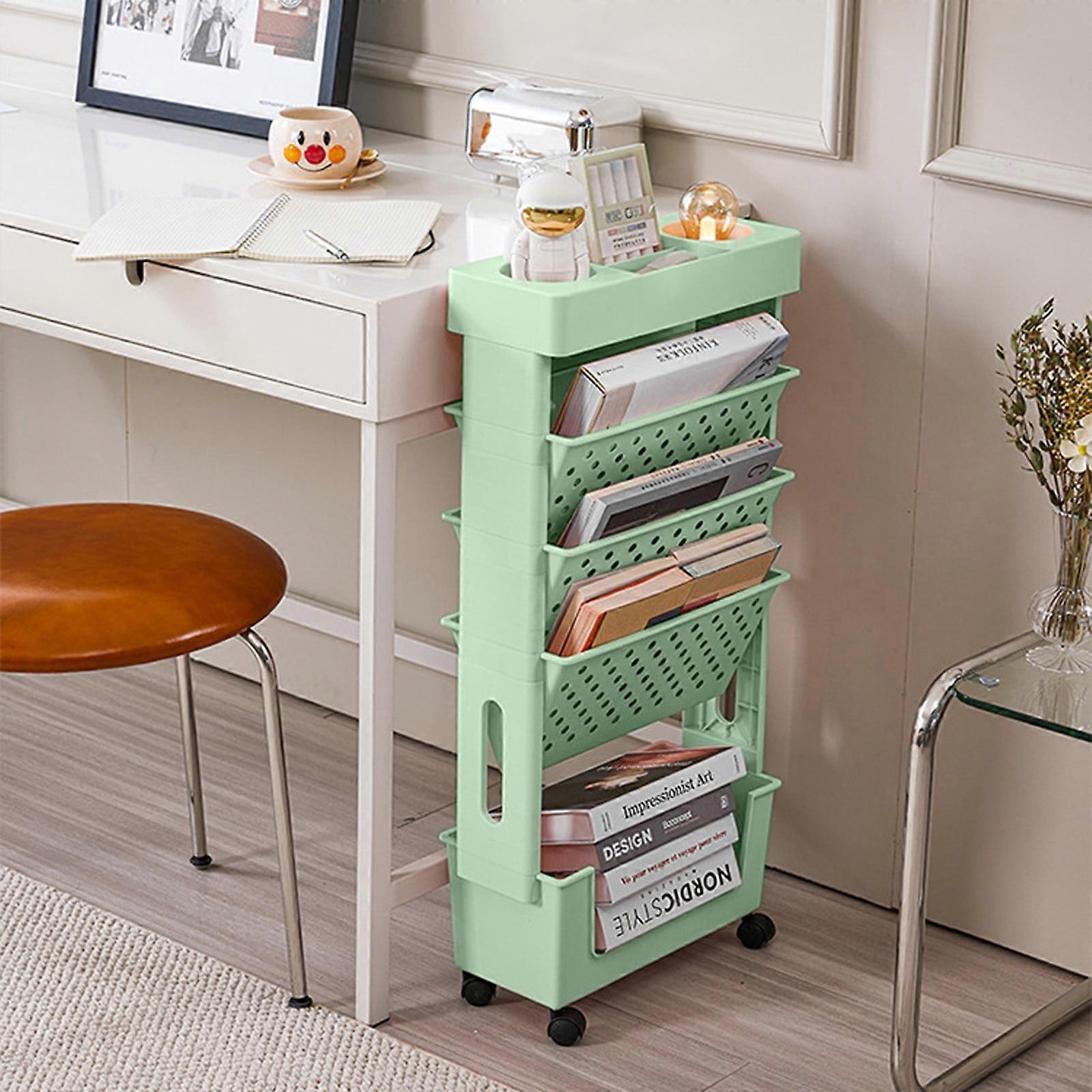 Donemore Movable Bookshelf, Multi-layer Stationery Storage Rack, Compatible with Home Study Office Classroom Use