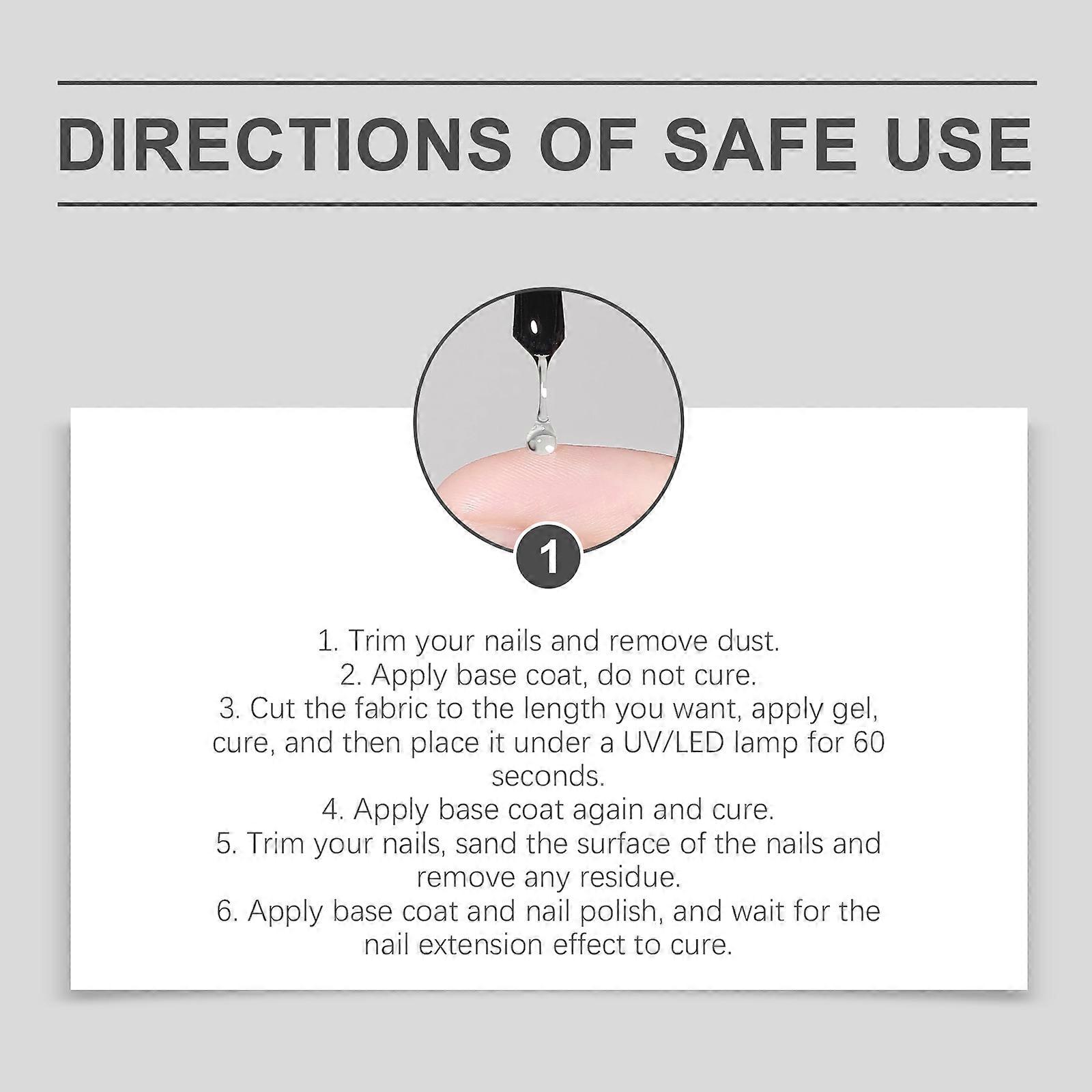 Our nail art solid glue is carefully formulated from acrylic (ester) /VP copolymer and acrylic (ester)/ethylhexyl acrylate copolymer. Designed specifically to make nails stable, wear-resistant and damage-resistant, with longer-lasting performance. The usage method is extremely convenient: 1. Trim nails and remove dust. 2. Apply the primer and do not let it cure. 3. Cut the fabric to the required length, apply the gel, and after curing, place it under a UV/LED light for 60 seconds. 4. Reapply the primer and let it cure. 5. Trim your nails, polish the surface of your nails and remove any residue. 6. Apply base glue and nail polish, and wait for the nail lengthening effect to solidify. And it can keep the nails intact for a long time, and they are not easy to crack or break.