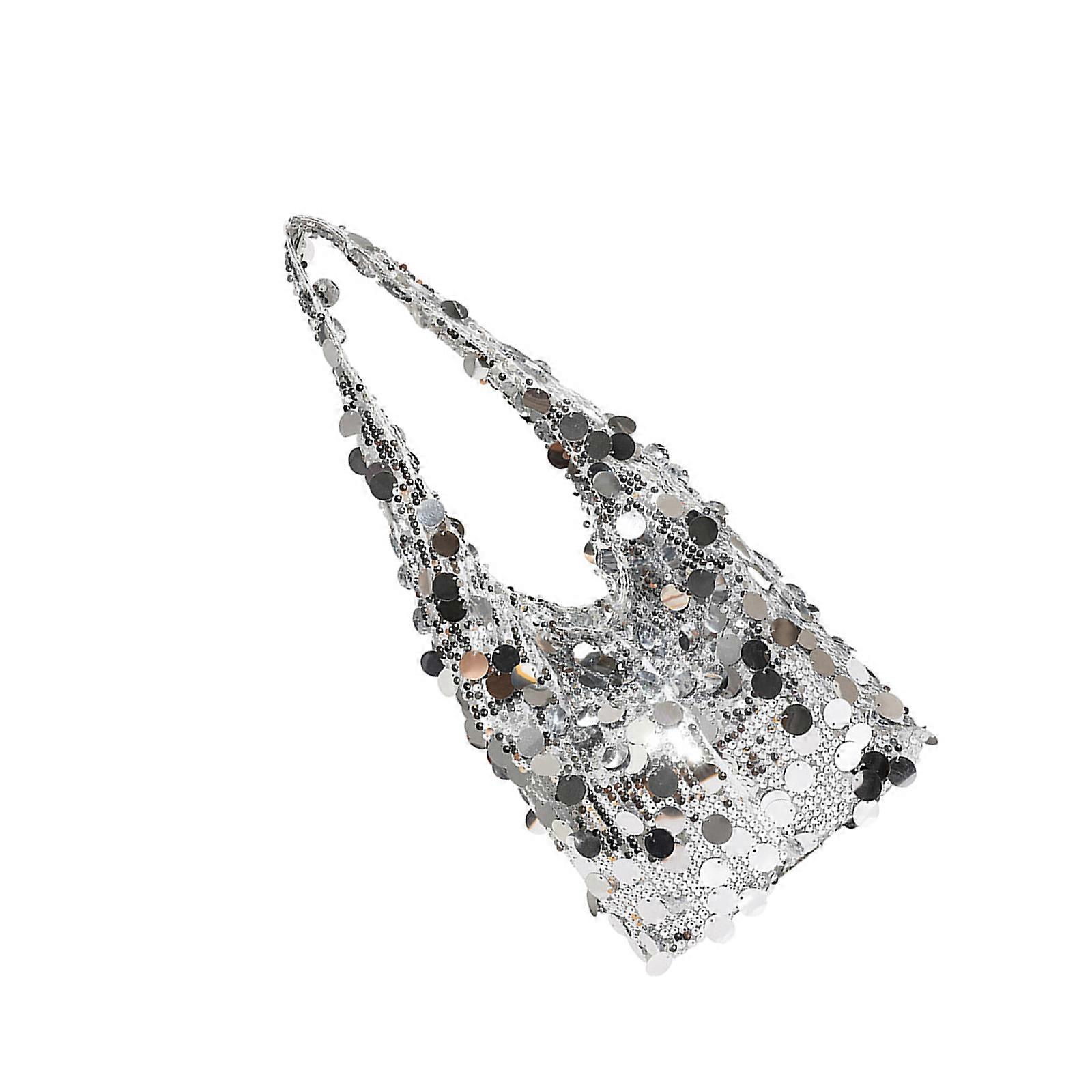 Elegant Glitters Work Bag Spacious Compartment Ergonomic Shoulder Support Professional Commuting Bag Practical Handbag Silver
