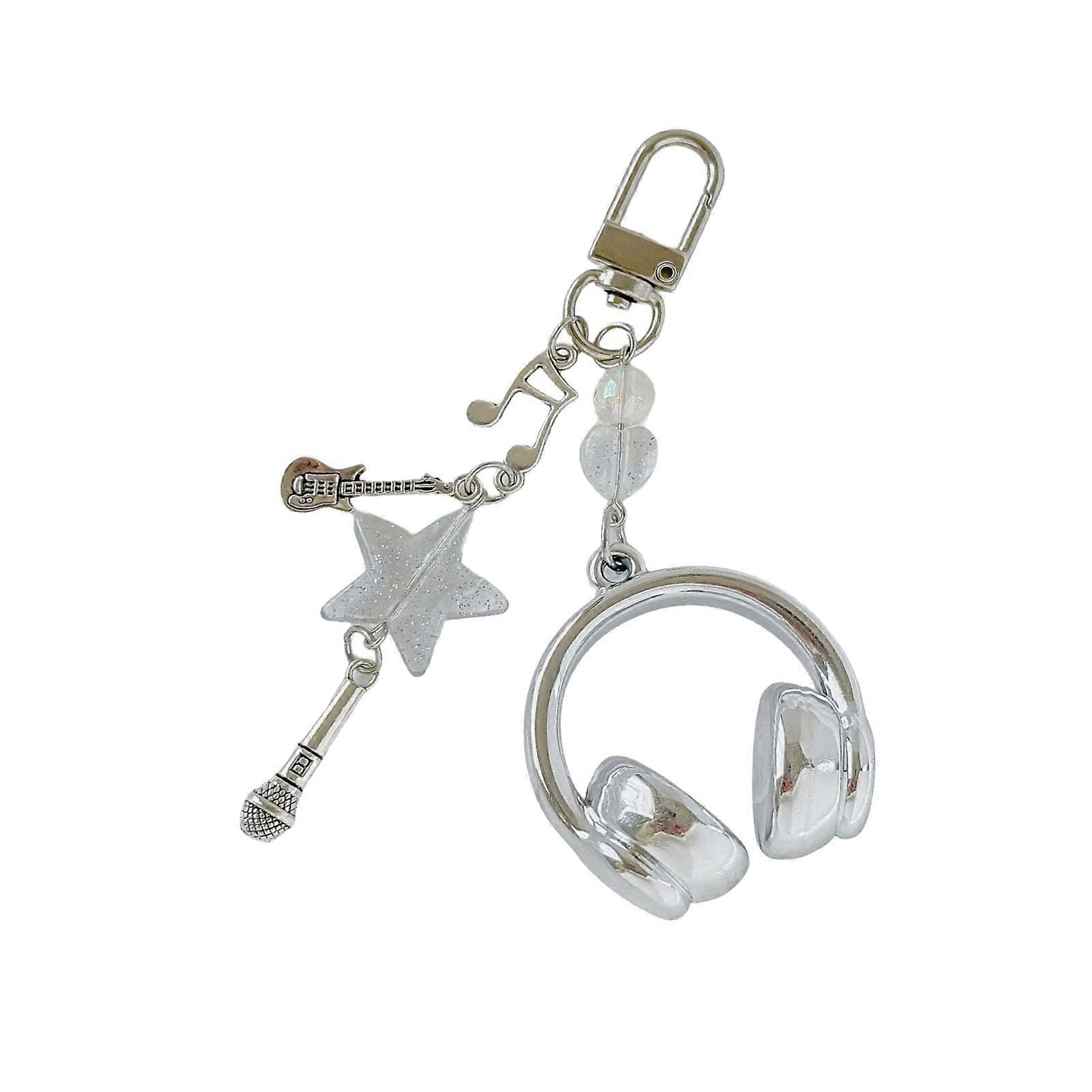 Elegant Sequined Phone Cord With Musical Theme Dense Keychain Addition Perfect Gift For Music Enthusiasts Silver