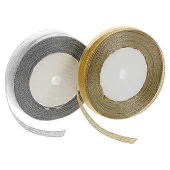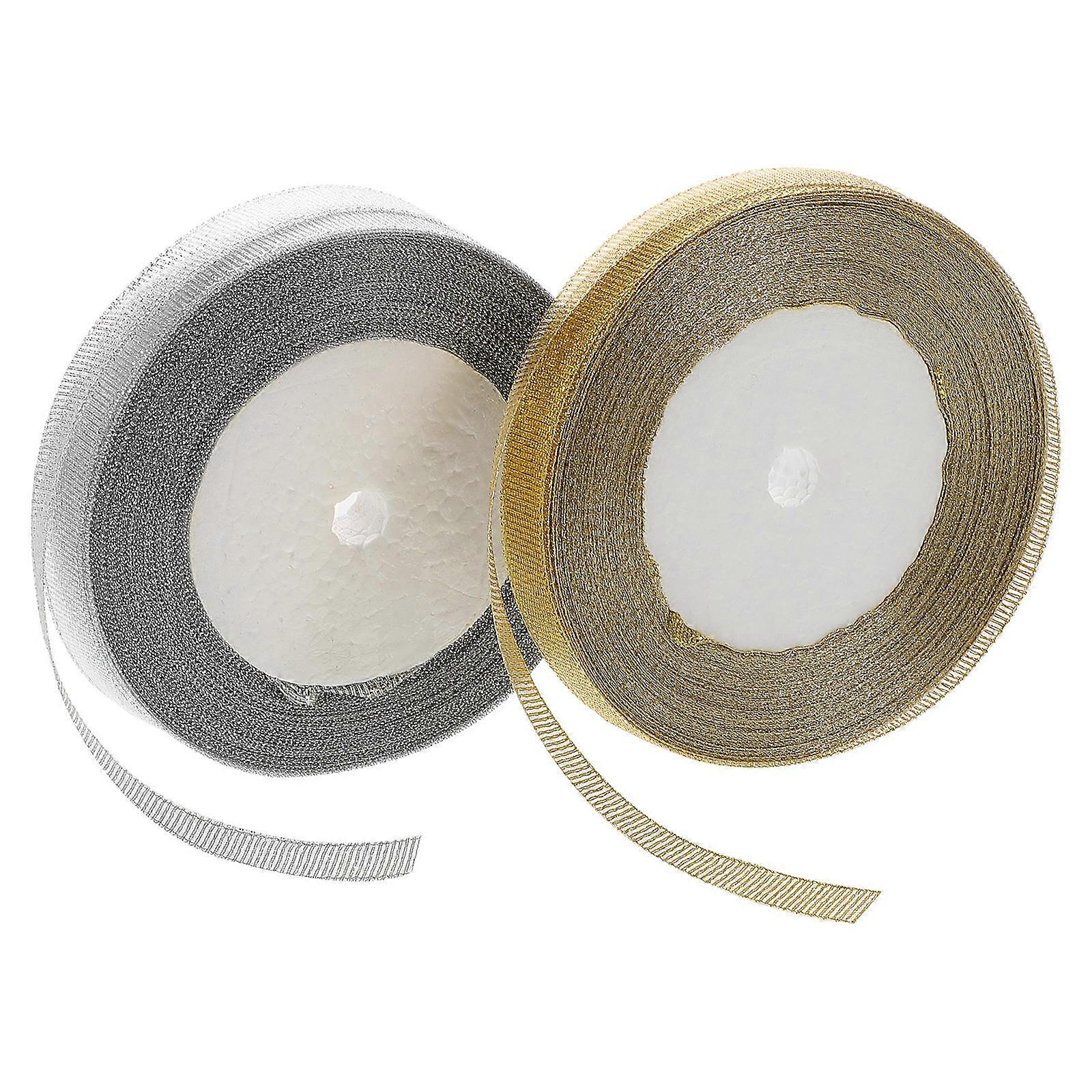 Gold Glitter Ribbons Metallic Fabric Ribbon for DIY Use 2 Rolls Sparkly Ribbon