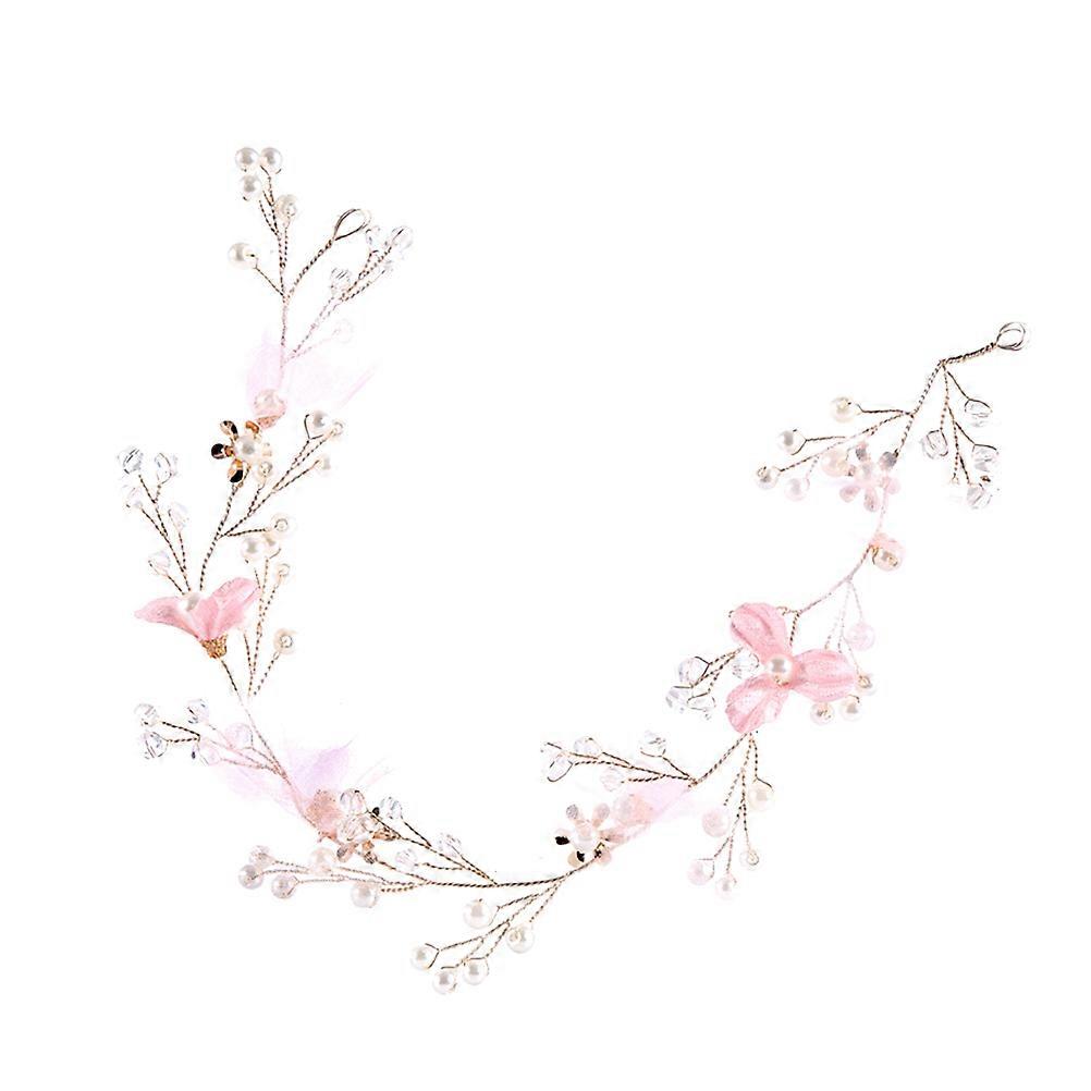 Pearl Beads Headband Hair Accessories for Wedding 2Pcs Pink Floral Decoration