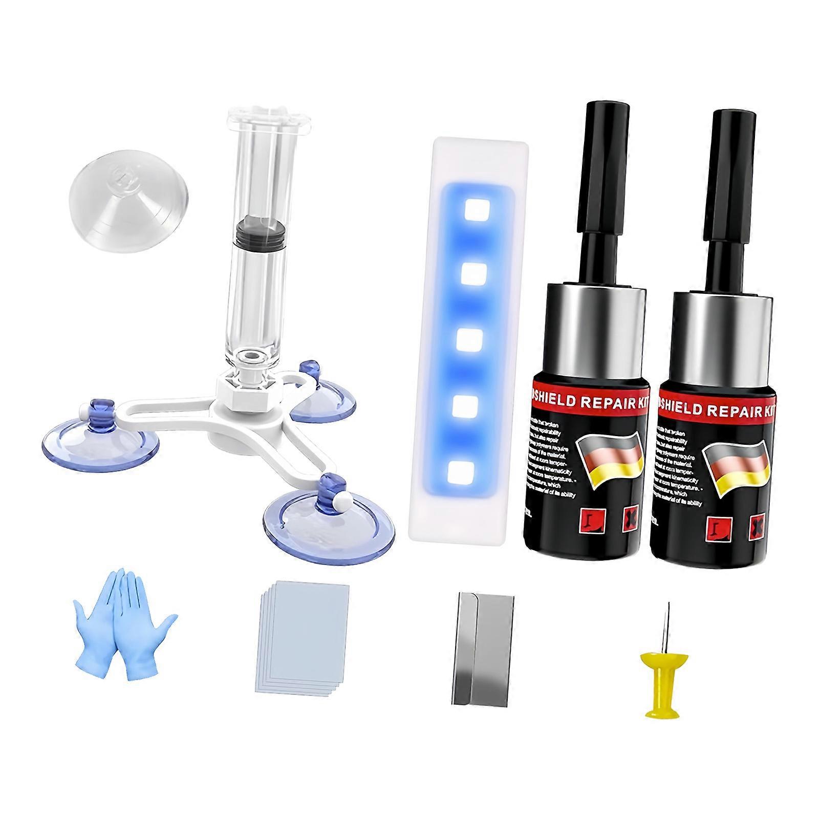 High Efficiency Travel Friendly Professional Windshield Crack Restoration Set Includes Curing Lamp Nighttime Solution Multicolor