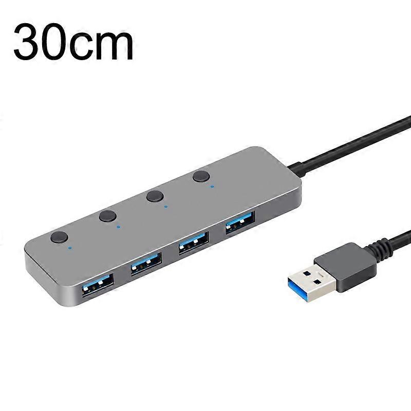 HS0059 Independent Switch USB 3.0 4 Ports Extension Type-C / USB-C Aluminum Alloy HUB, Cable Length: 30cm