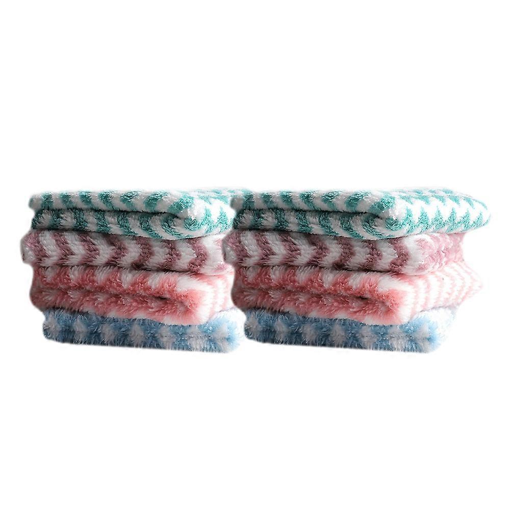 Absorbent Cleaning Towels for Kitchen Use Made of Coral Fleece with Wavy Stripe Design 8pcs Assorted Color