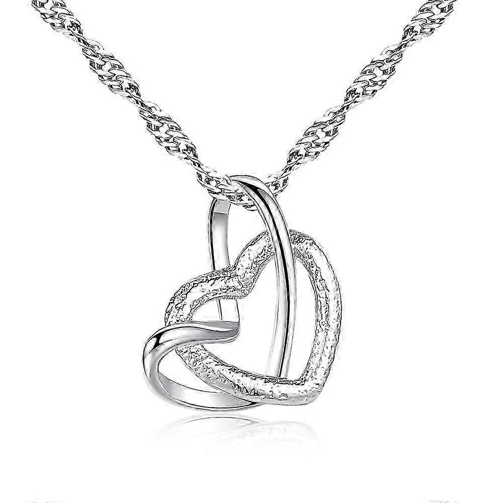 JiaWei Frosted Double Heart Pendant Necklace Elegant Lady Heart Heart Necklace cOM
