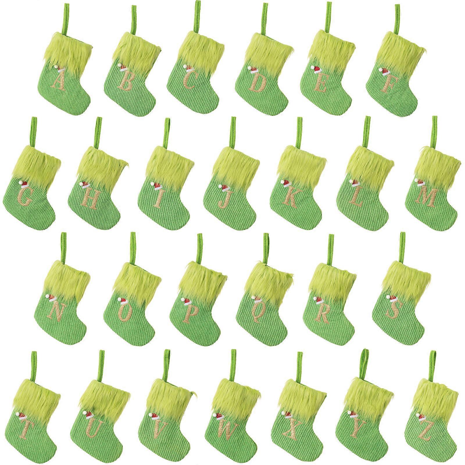 Christmas Stockings Knitted Letters Embroidery 26 Letters Green Hanging Candy Gift Stockings Ornaments Christmas Home Decor-DOF1