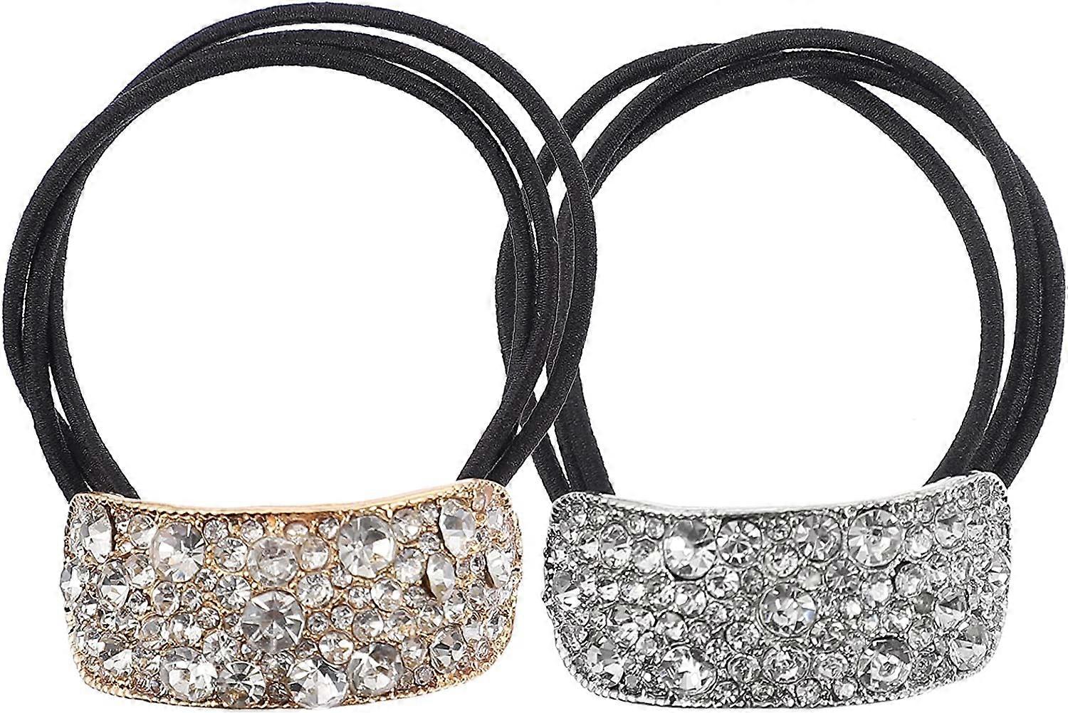 Elastic Hair Band Hair Circles 2Pcs Rhinestone Ponytail Holder
