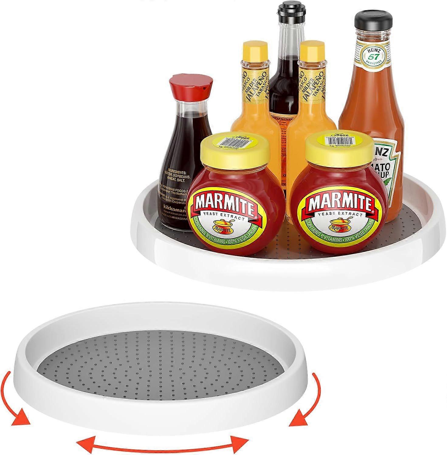Kitchen Cabinet Turntable, 2 Pieces, 25cm Spice Rack, 360 Rotating Spice Storage Rack for Storage and Organization, Suitable for Dining Room and Livin