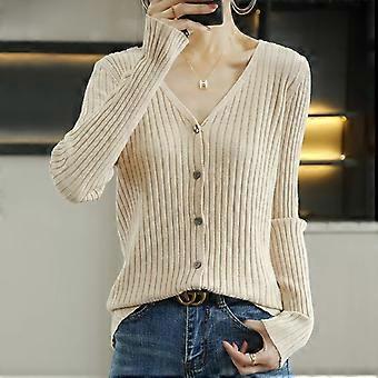 Spring And Autumn New Ladies Wool Knit Cardigan Loose Slim Solid Color Button Knitted Korean Fashion Sweater Jacket