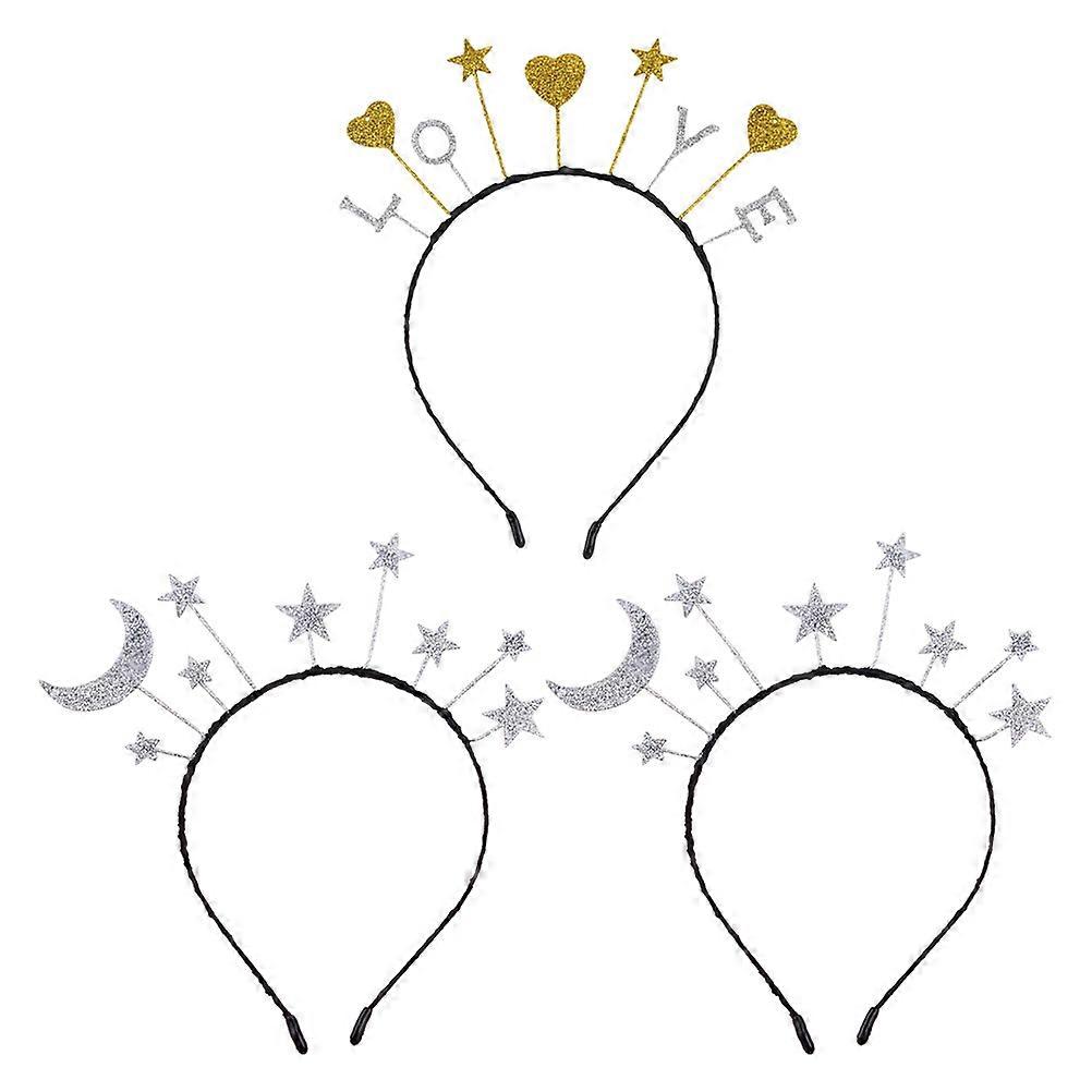 Glitter Headbands with Moon, Star, and Heart Decor – 3 Pack Hair Accessories for Parties, Birthdays, Festivals – Durable and Comfortable Fit