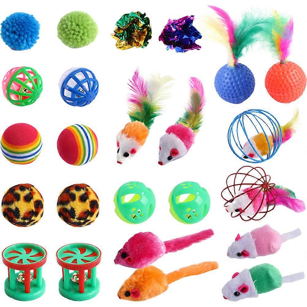 Kitten Teasing Toy for Playing 24Pcs Plastic Ball with Plush Material