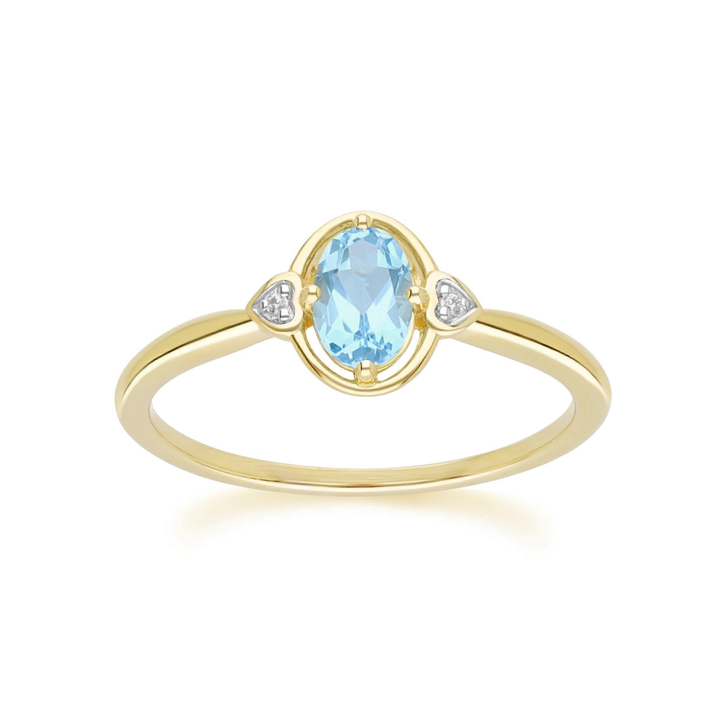 Classic Oval Topaz & Diamond Heart Ring In 9ct Yellow Gold