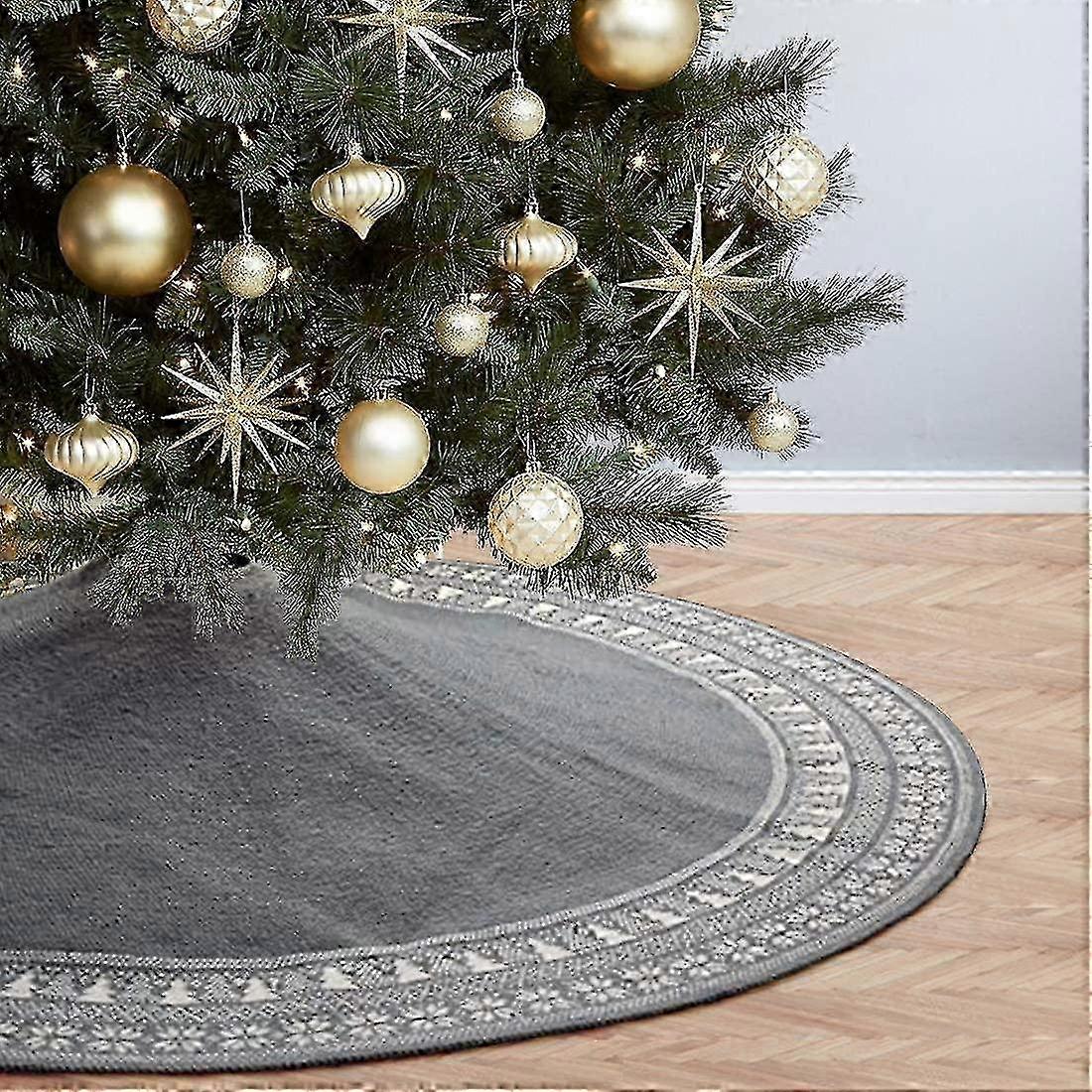 Knitted Christmas tree skirt 90cm with thick snowflake rustic pattern