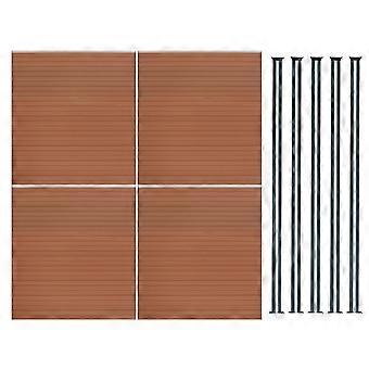 Composite Fence Panel x 4 & LED Posts x 5 - Brown