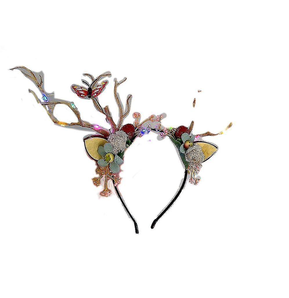 Korean Version Of Christmas Antlers Headband, Net Celebrity Halloween Headband With Flashing Lights, Elk Hair Bundled Hair Cave Girl