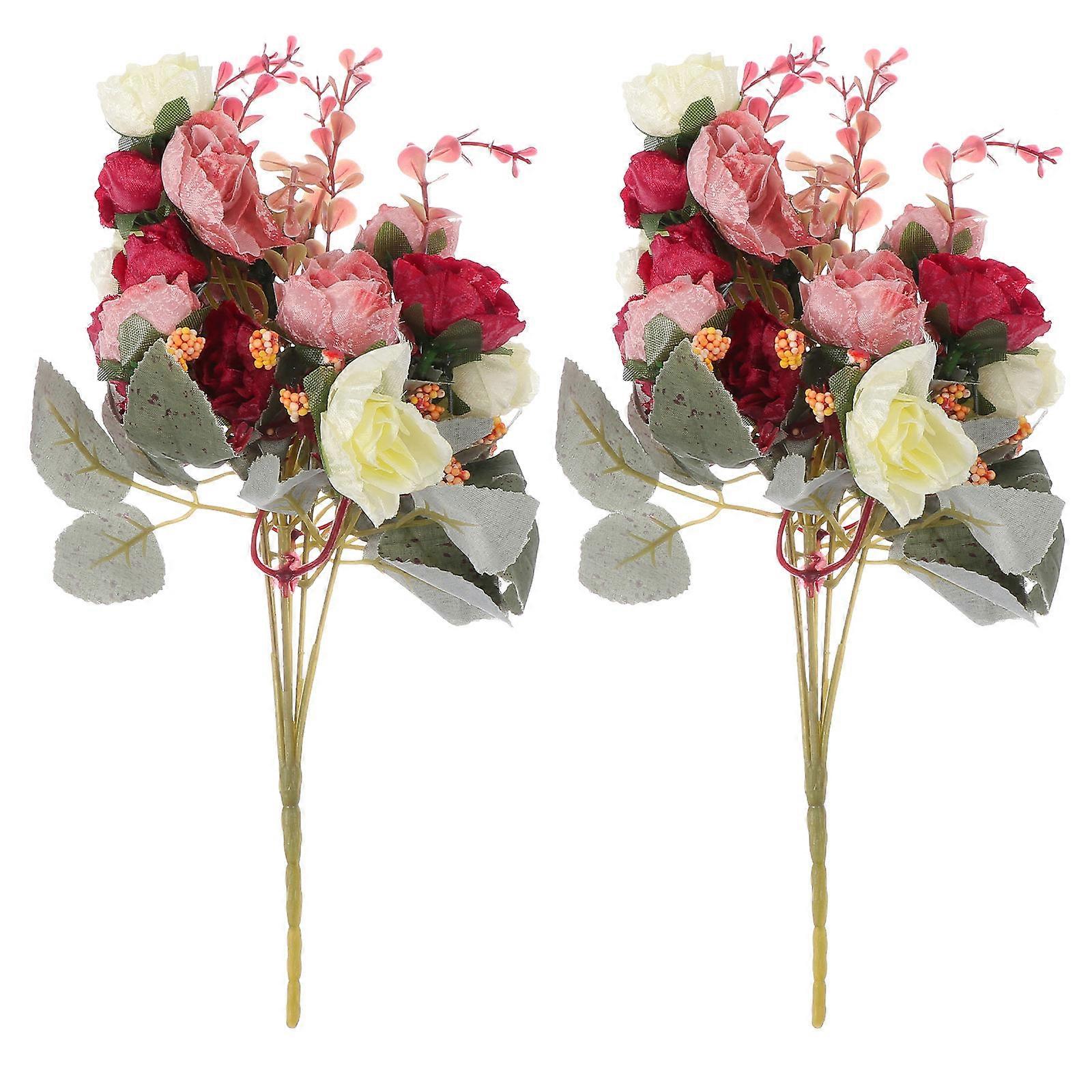 Home Fake Flower Rose Bouquet for Decor 4Pcs Simulated Flower Prop