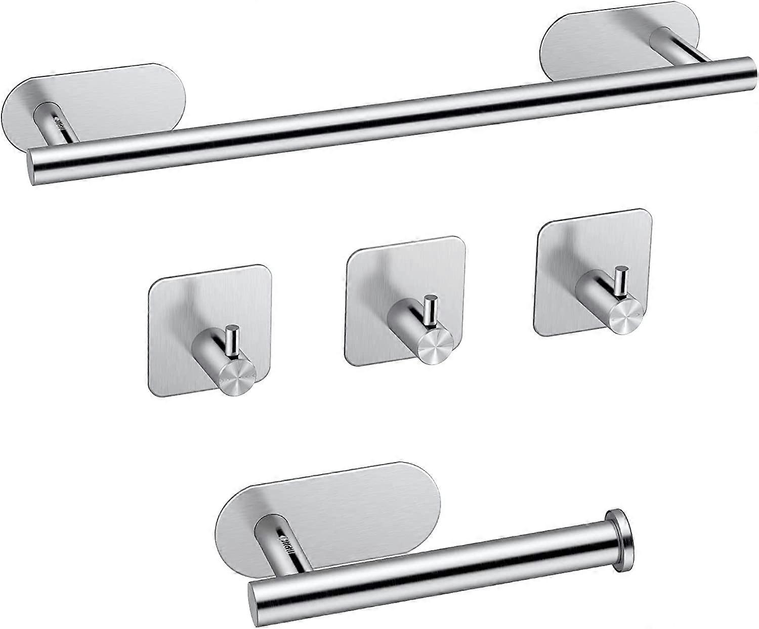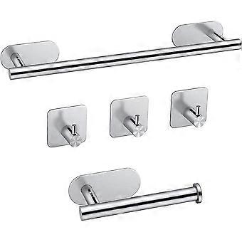 Bathroom Towel Rack 40 304 Stainless Steel Self Adhesive Bath Towel Rack Kit+Toilet Paper Holder+3 Towel Hooks Towel Bar Set-Silver